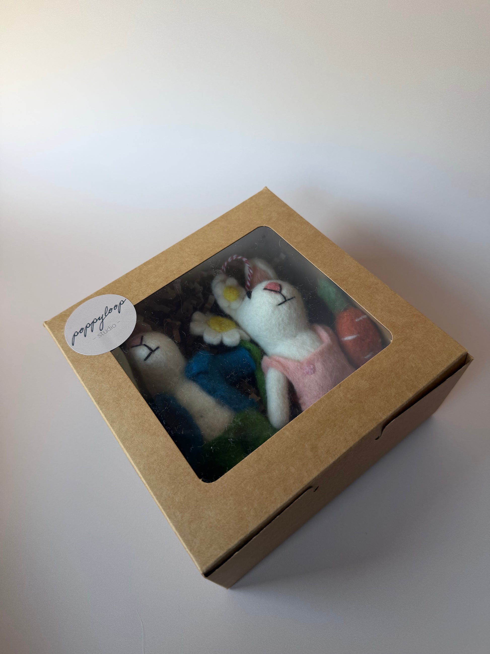 A considered pairing of two wool felt bunnies, designed to sit beautifully together as part of your spring styling.